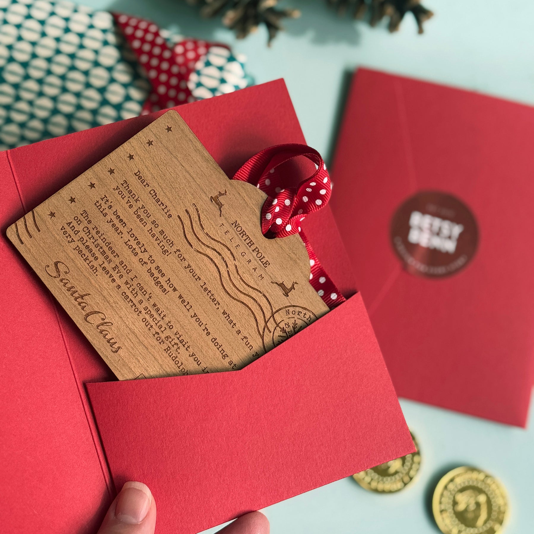 A personalised wooden telegram direct from Father Christmas. Sure to become the most loved Christmas tree ornament for those who truly believe.