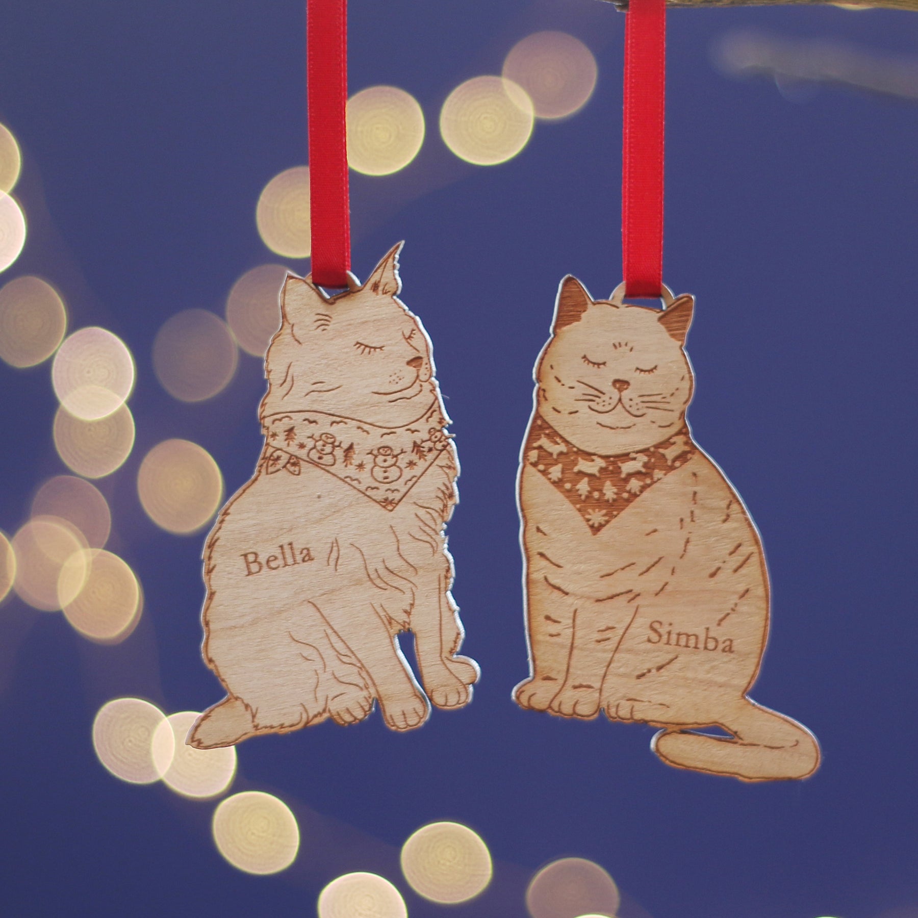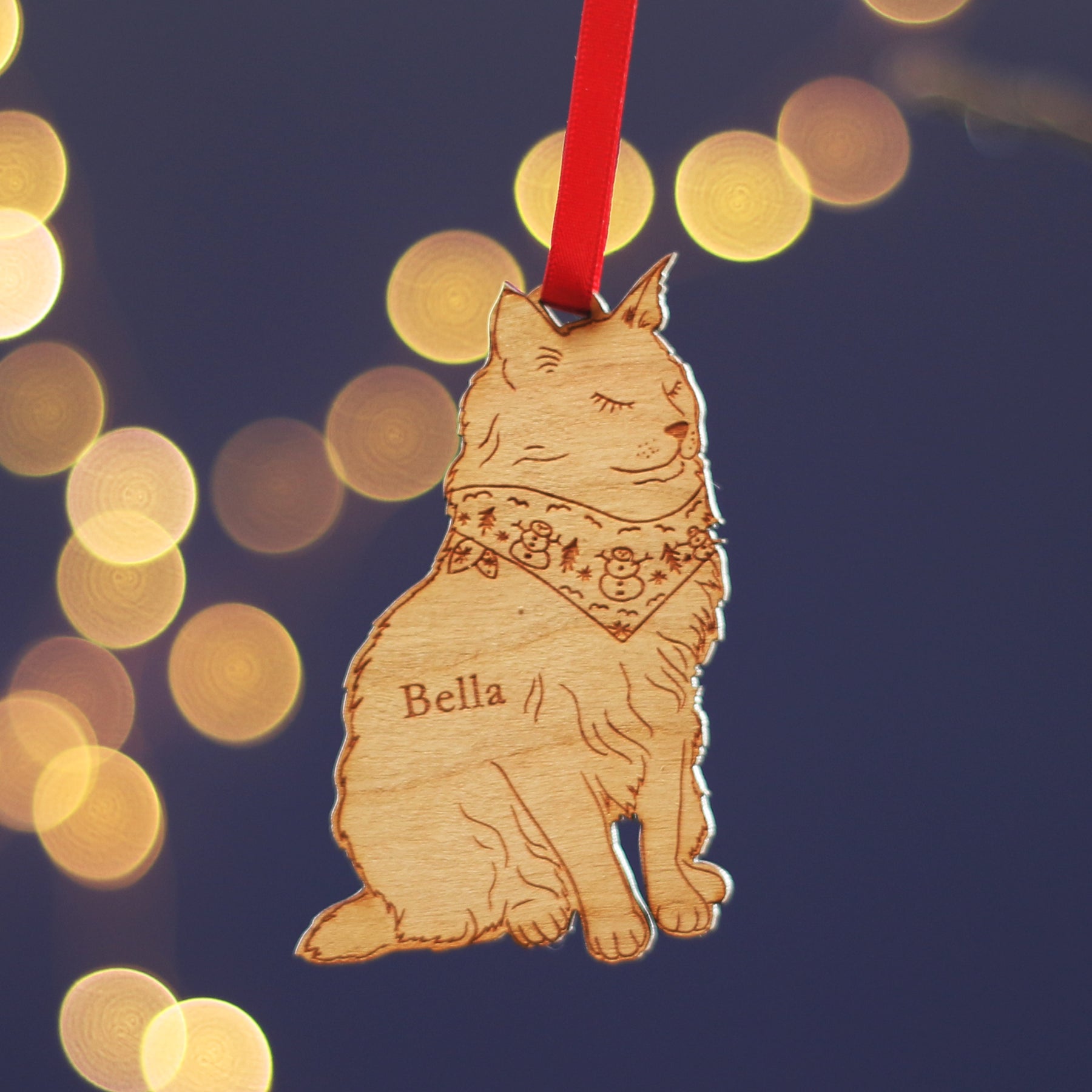 Each wooden cat decoration is engraved with your cat’s name and features a festive bandana. We’ve even designed the bandana to include some of their favourite things - like mice and birds!
