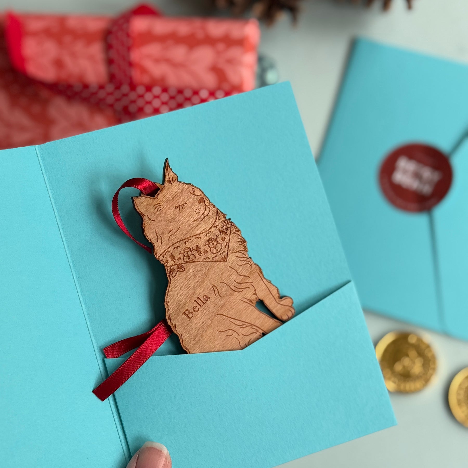 Crafted from sustainably sourced cherry wood in our Cheltenham studio, these unique decorations are made to last. Whether you’re marking a kitten’s first Christmas, surprising a cat-loving friend with a thoughtful stocking filler, or adding some personalised charm to your own tree, these ornaments make a delightful keepsake.