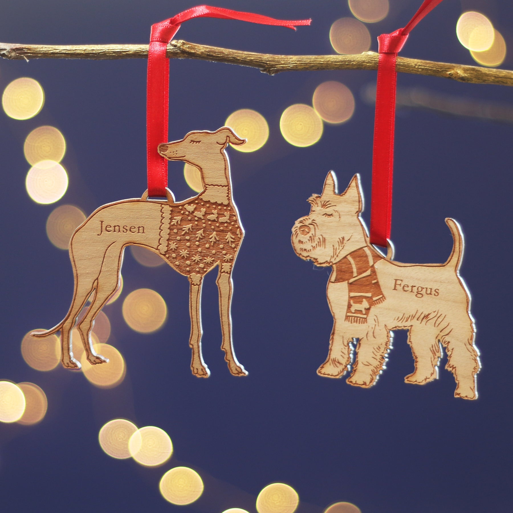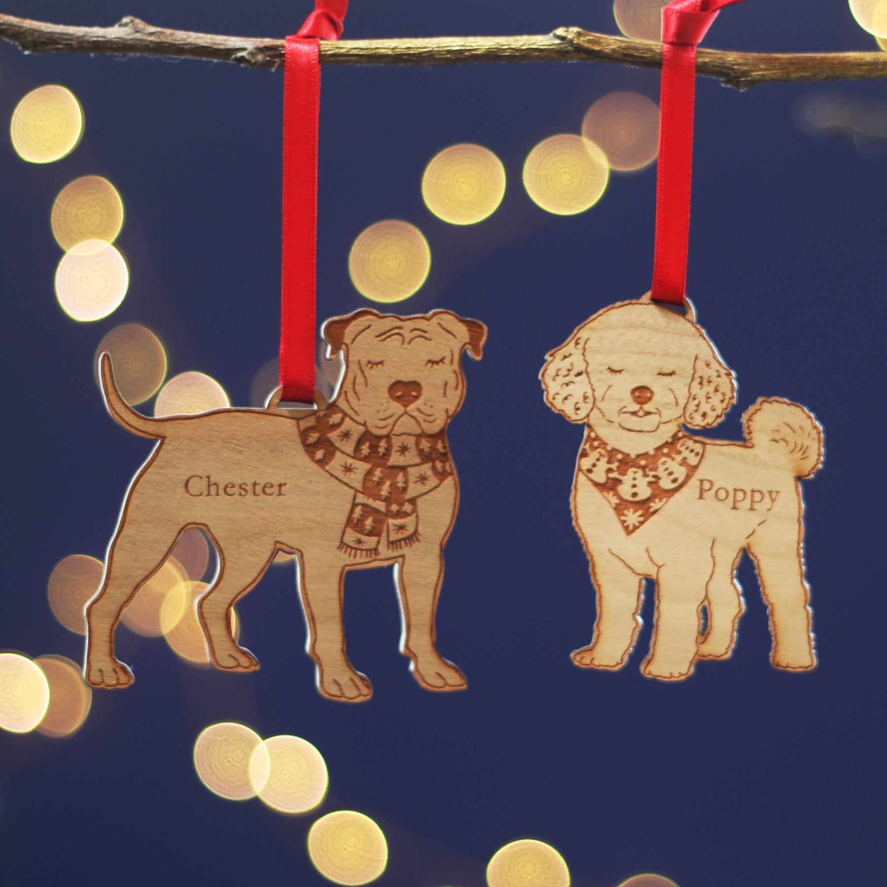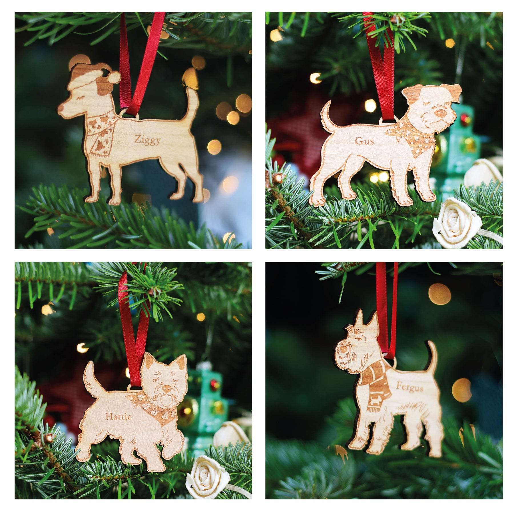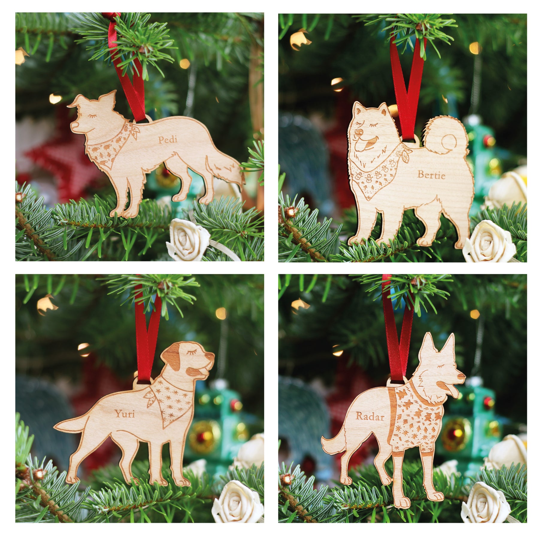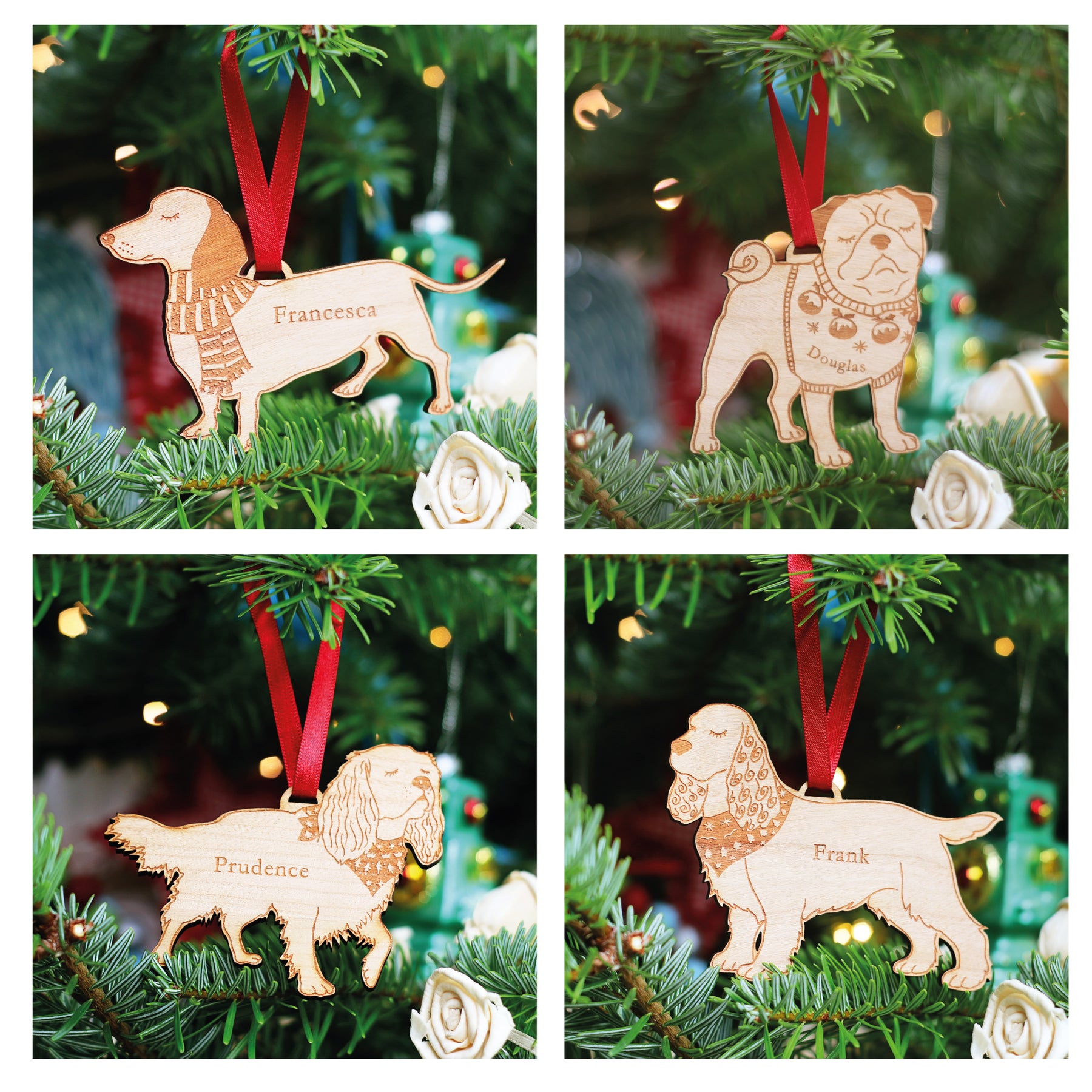 Each wooden decoration is engraved with your dog’s name and features an adorable festive outfit. Think cosy scarves, Christmas jumpers, and jaunty bandanas.