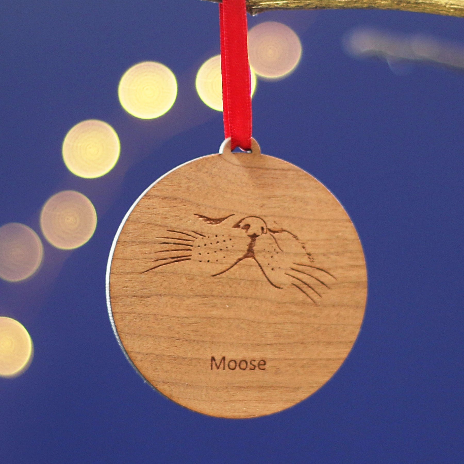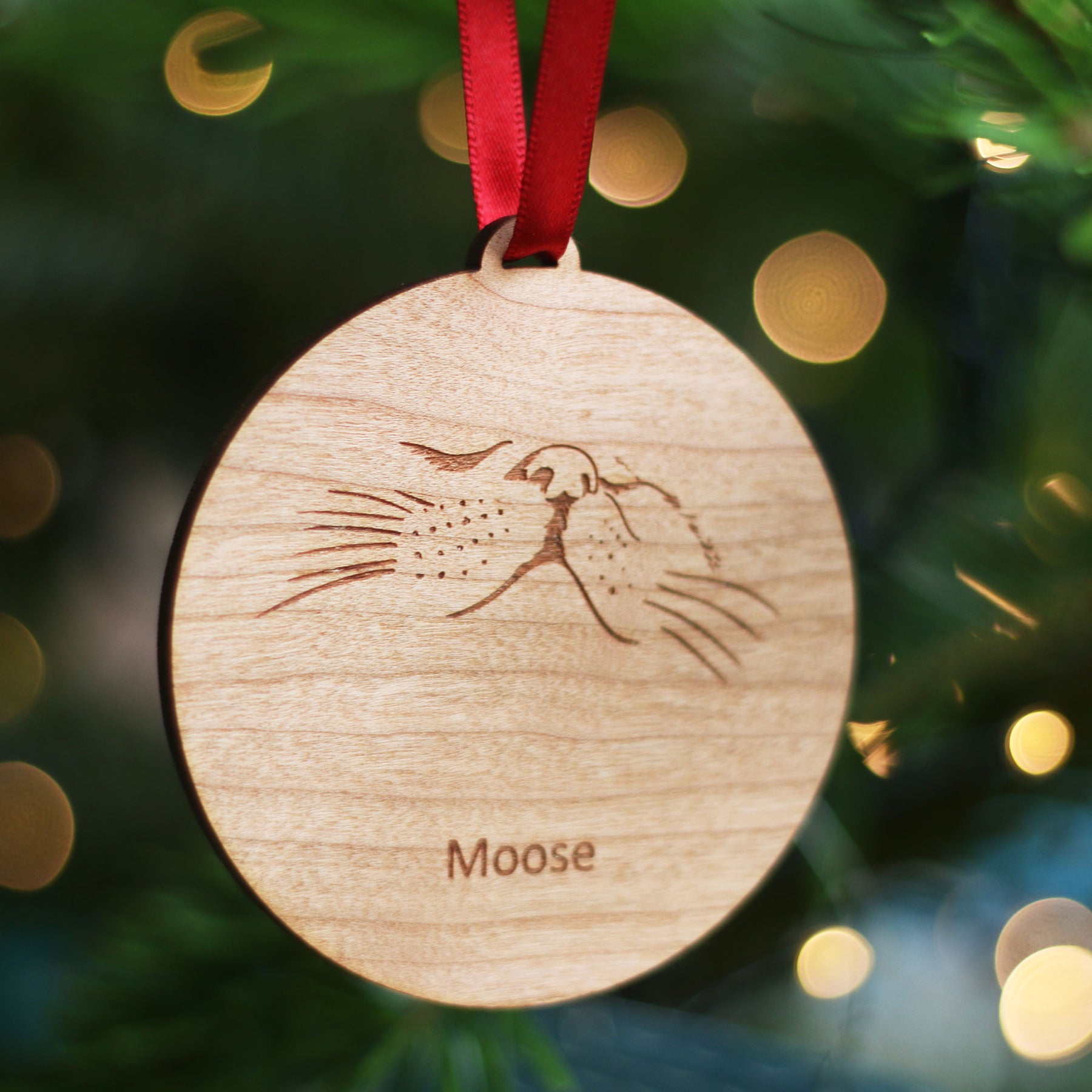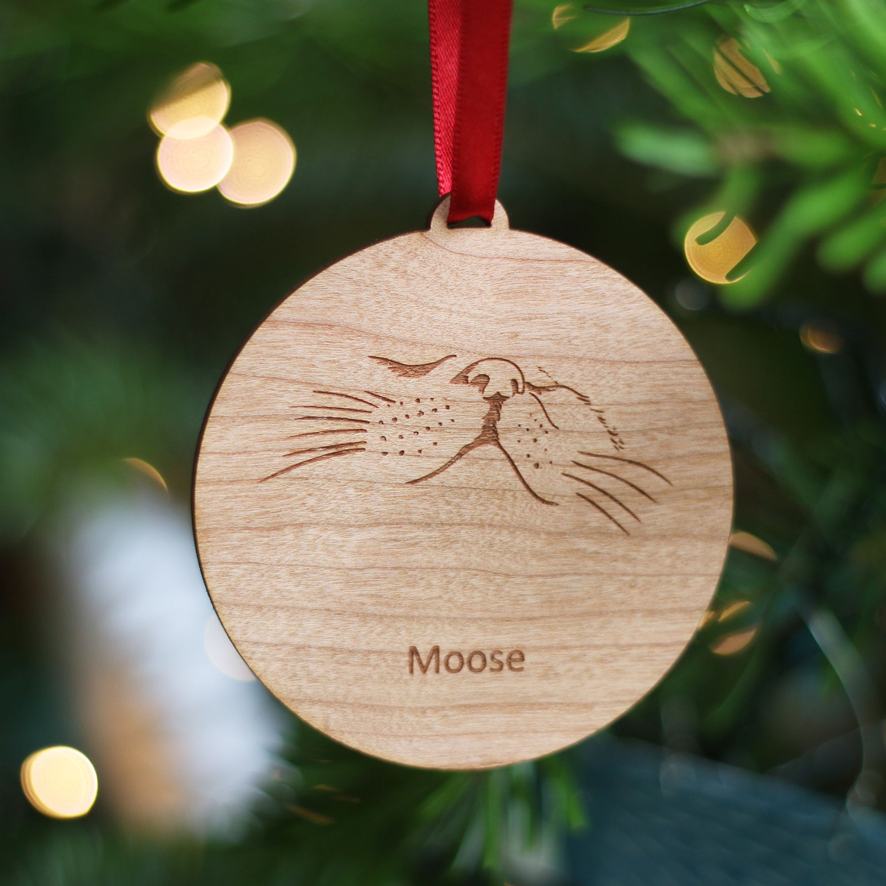 Personalised Wooden Cat Nose Christmas Tree Bauble