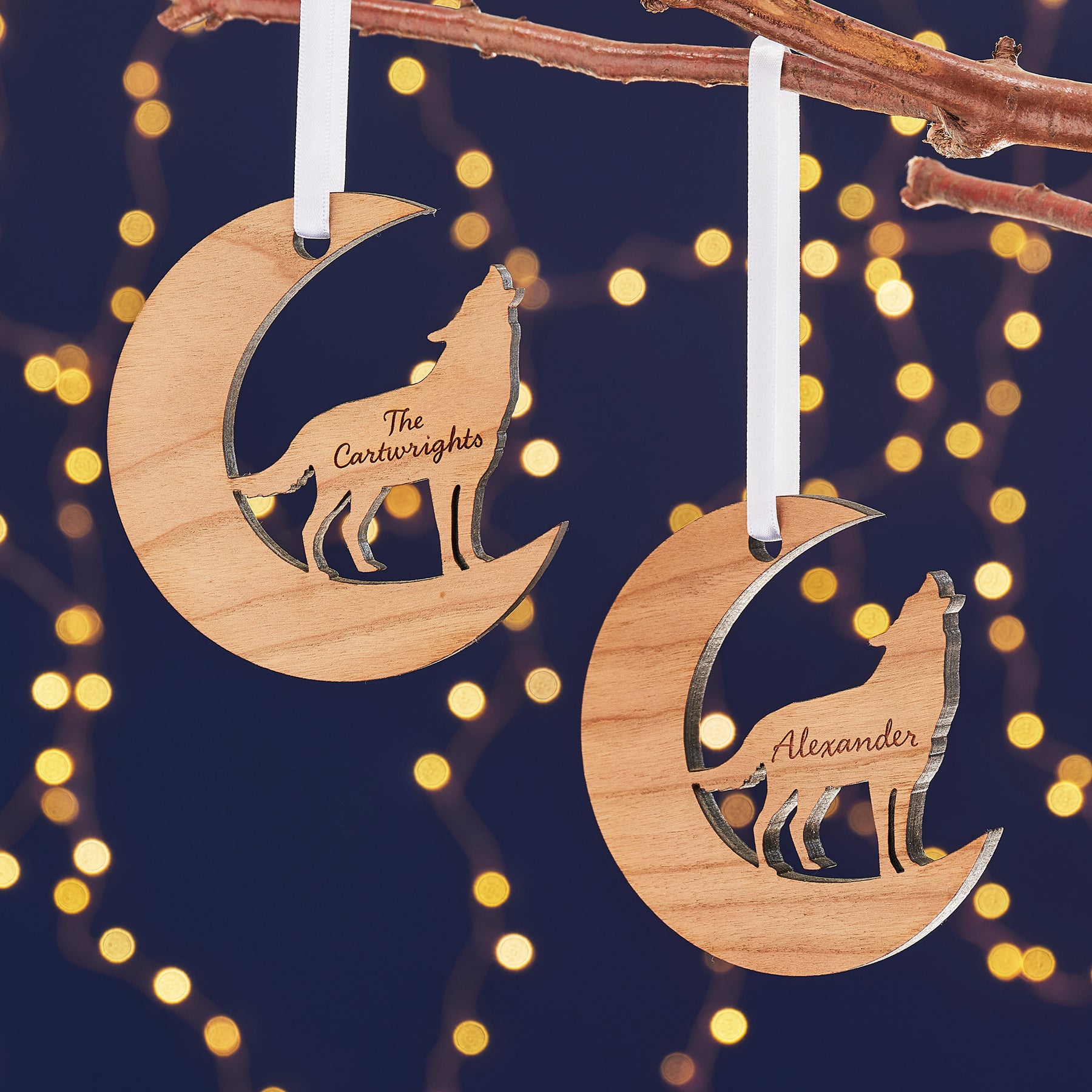 Evoke the magic of the Arctic Circle this Christmas with our beautiful wooden wolf Christmas tree decoration.