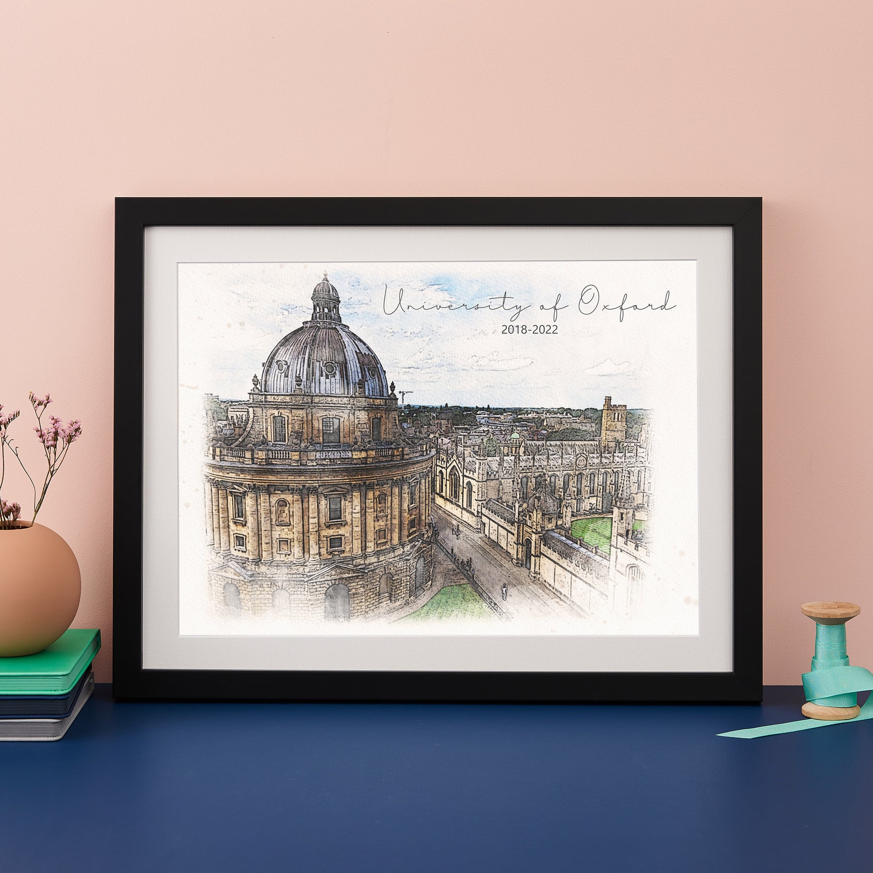 Celebrate your graduation with a gorgeous bespoke watercolour print.