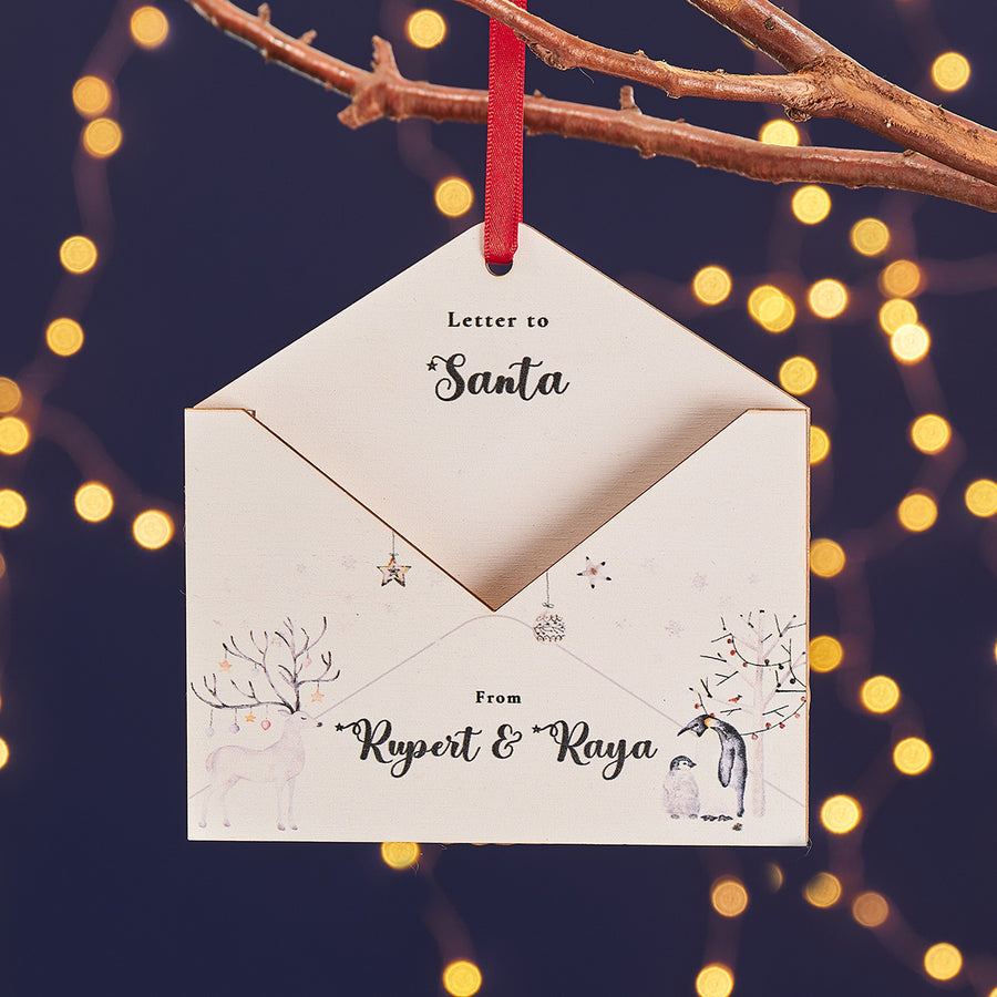 A personalised wooden "envelope" style Christmas tree decoration for sending that all important letter to Father Christmas. A magical gift for children of all ages.