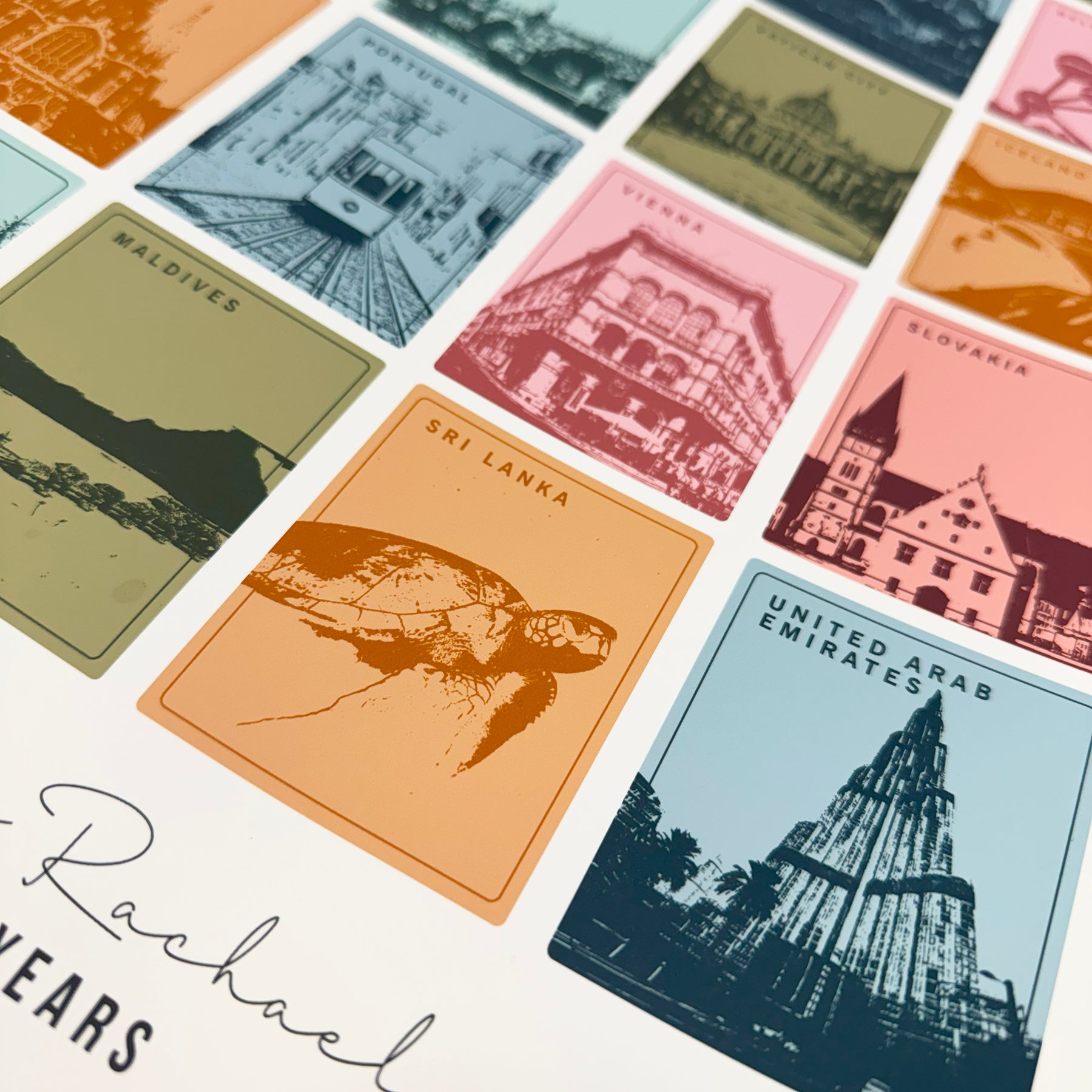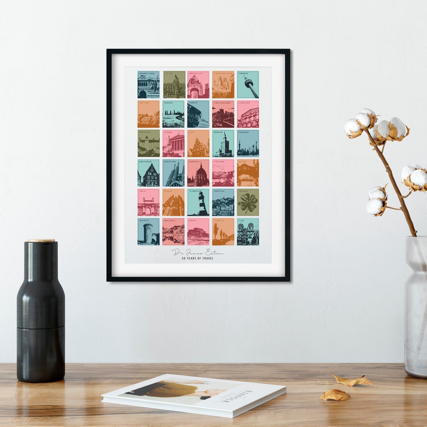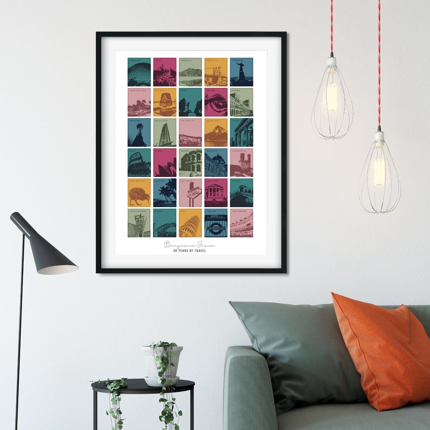 Looking for a beautiful and meaningful 30th birthday or anniversary gift? This stylish print celebrates 30 or your most-loved destinations, places, and adventures.