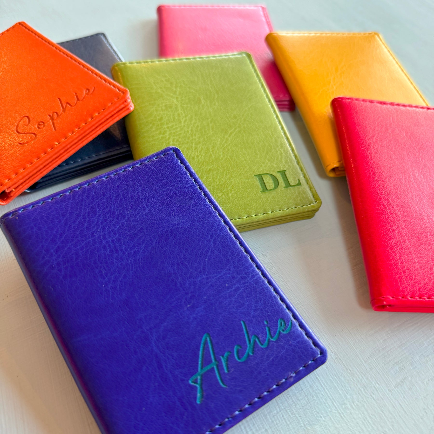 Our soft PU leather card holders come in a beautiful range of bright and fun colours.