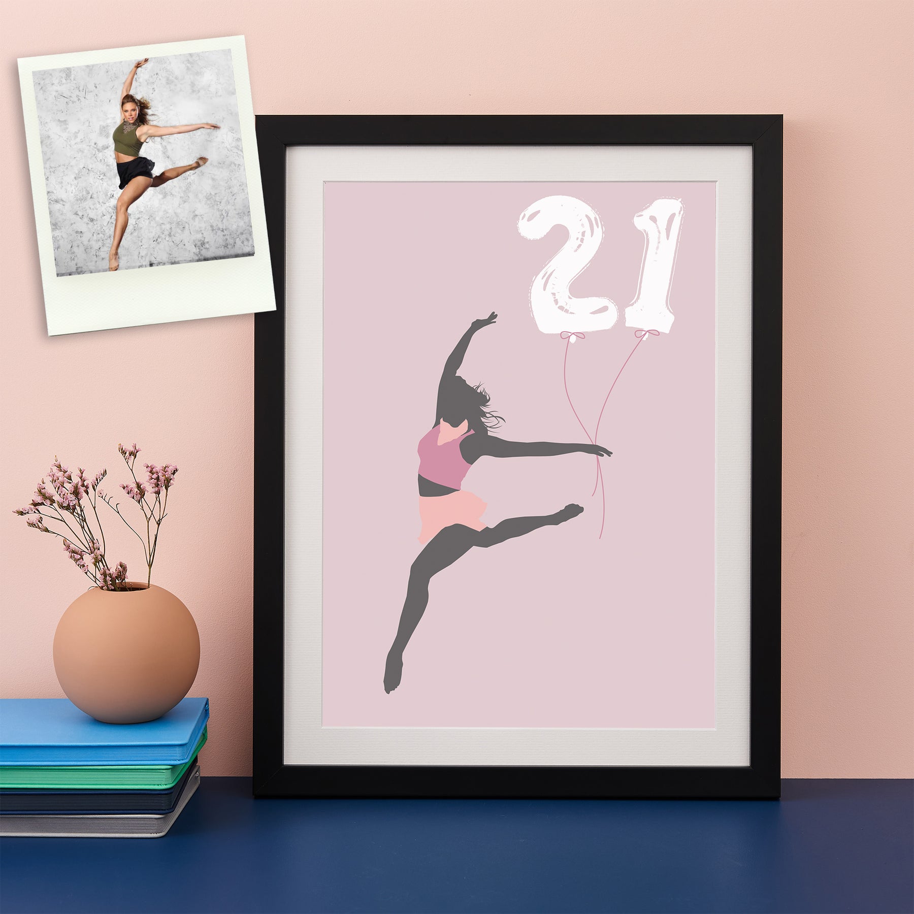 This stunning personalised art print is just perfect for a 21st birthday gift. We'll add the balloons to your image and create the perfect artwork.