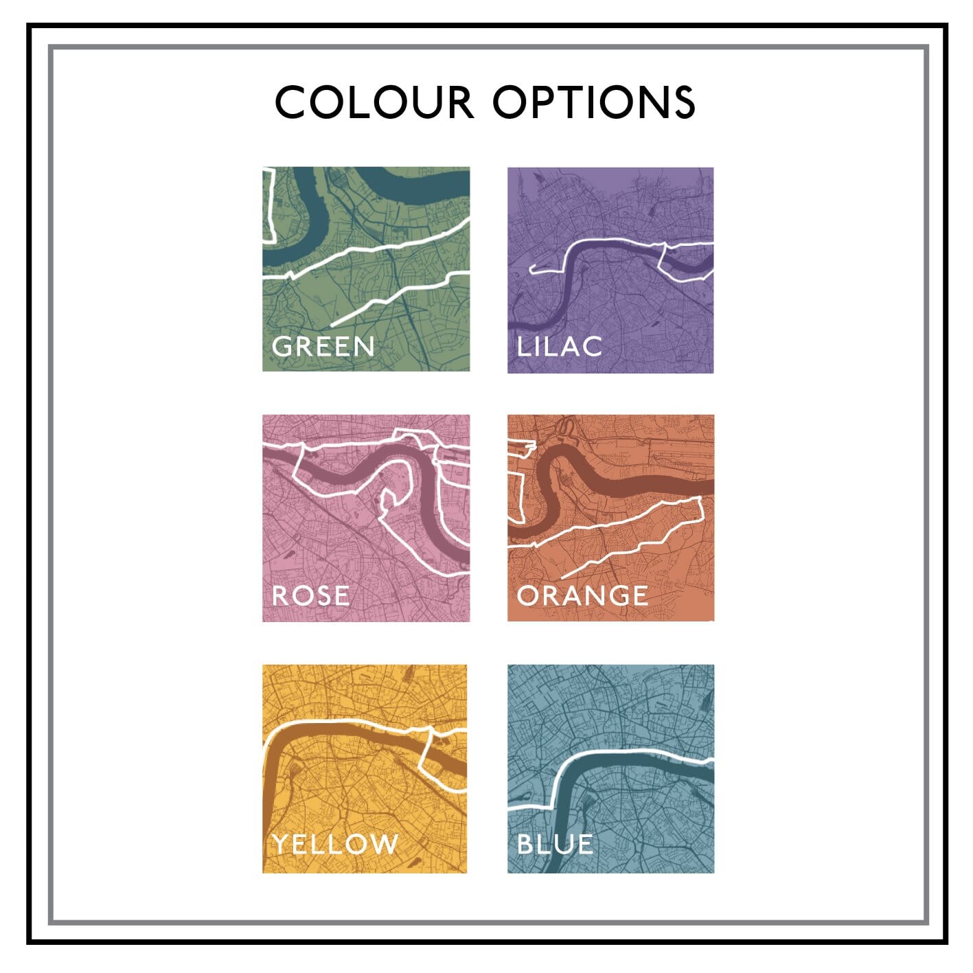 Our abstract map prints are individually designed to your requirements and a giclee print is then created using ultrachromatic professional inks on archival enhanced matte paper.