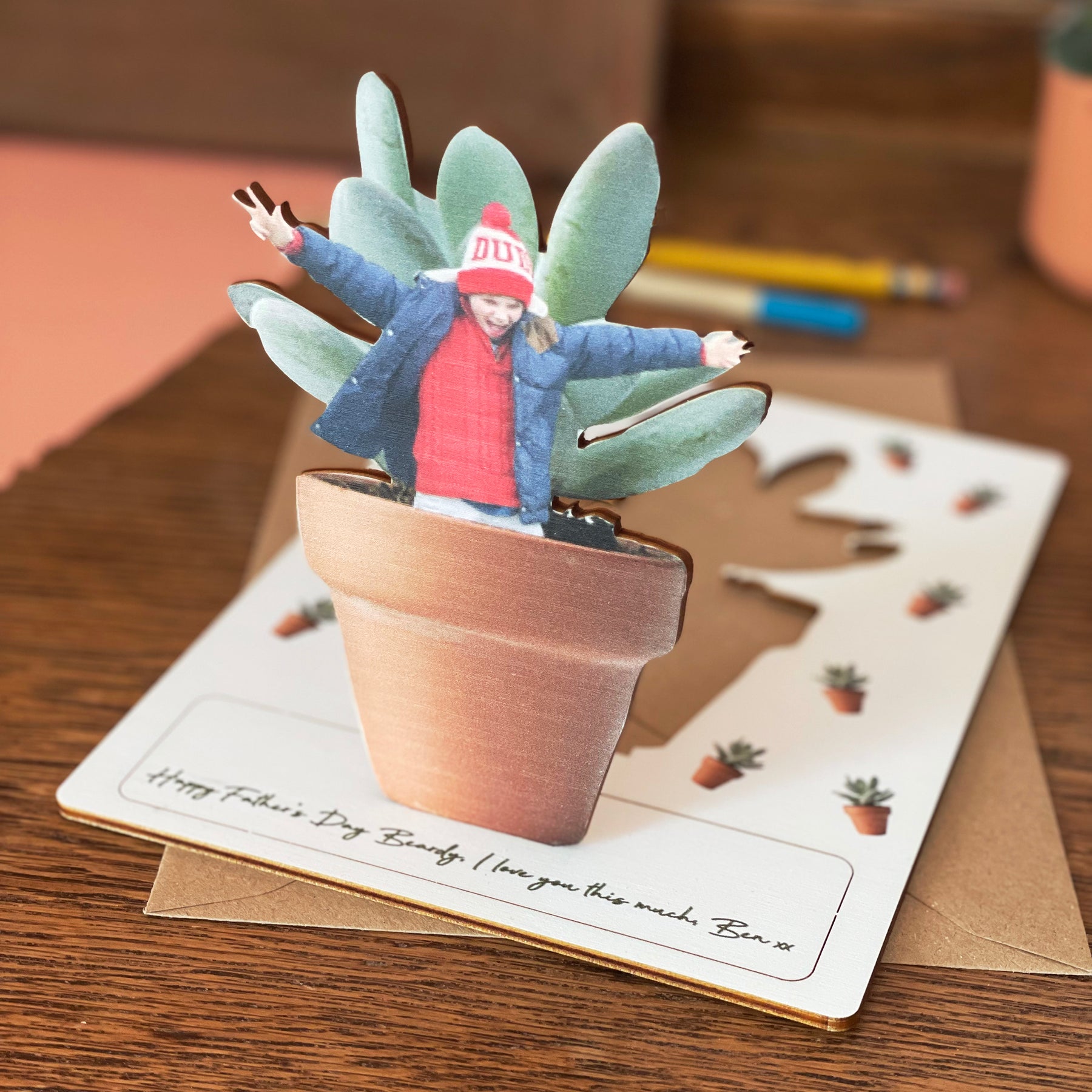 Nail the perfect Father's Day gift with our wooden succulent pop out card.