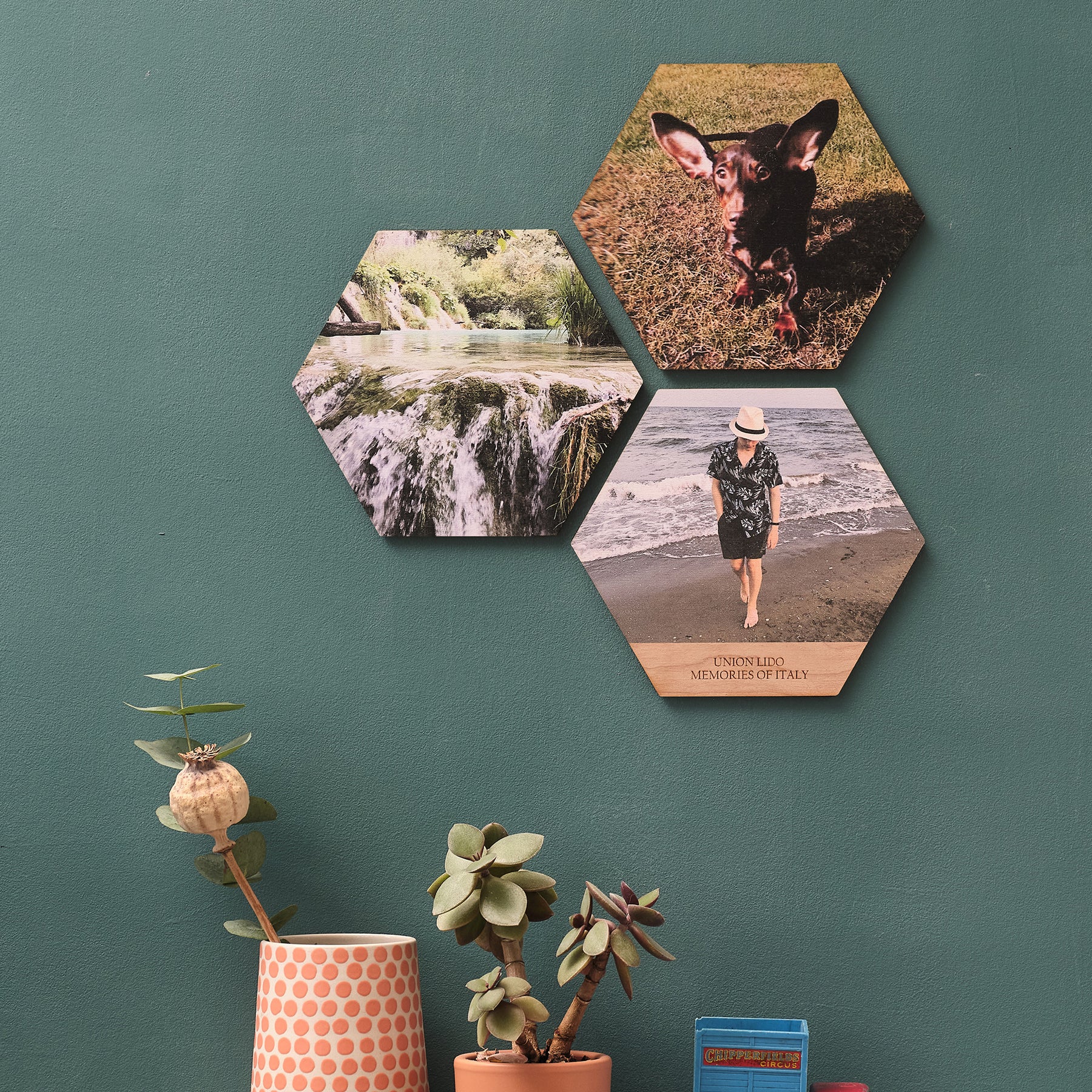 Personalised Wooden Photo Hexagons – A Set of Three for Your Home Gallery