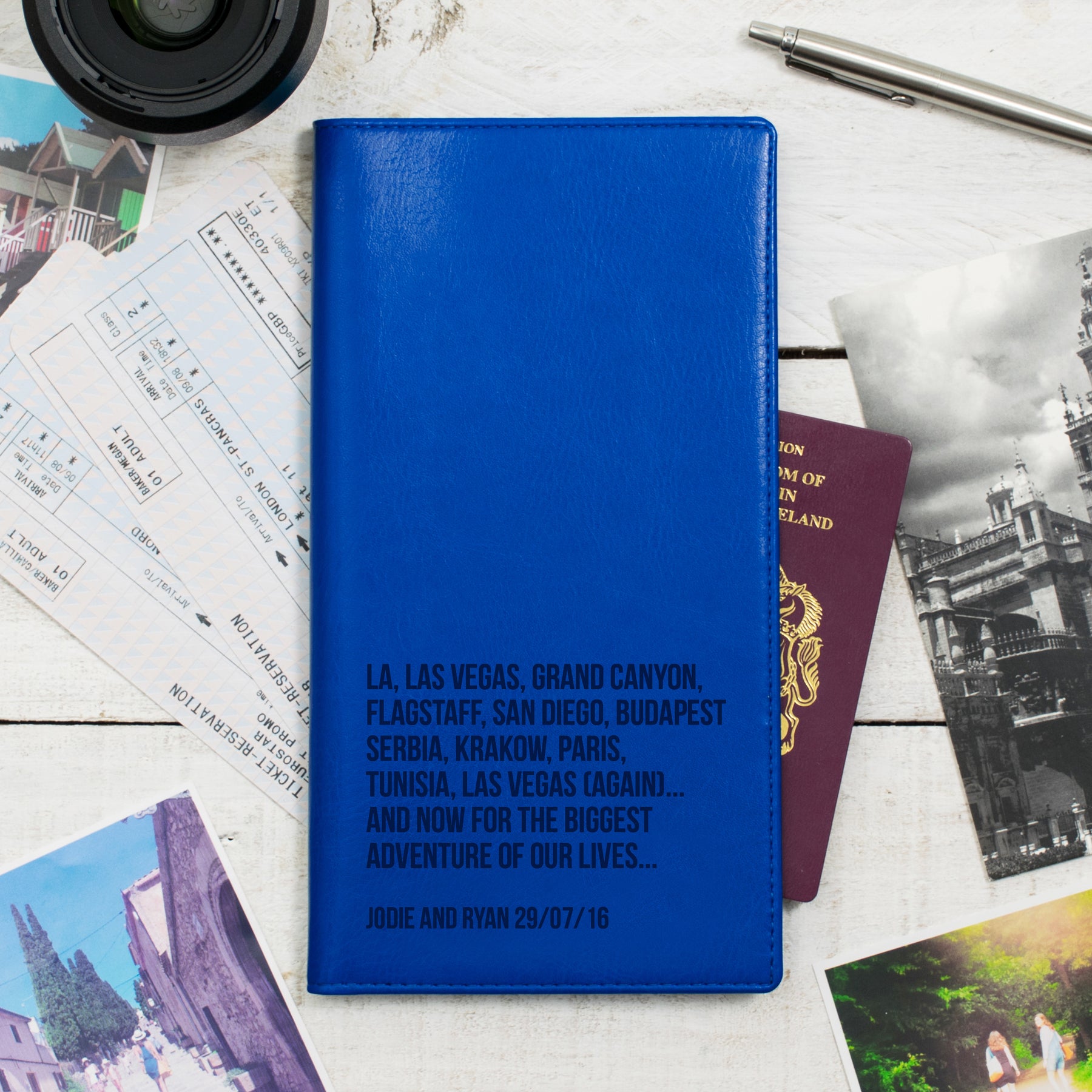 Our soft PU leather travel document holders come in a beautiful range of bright and fun colours. Engraved with up to seven lines of text that you choose.