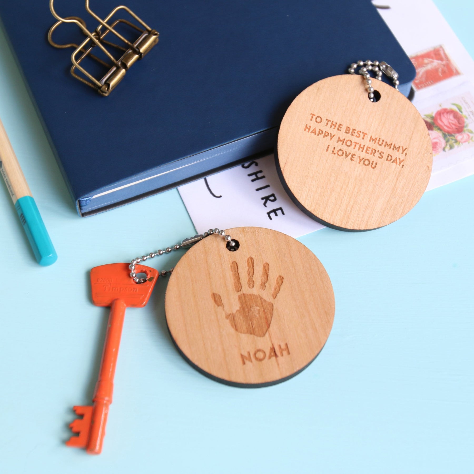 The babies grow so quickly! Capture that first tiny handprint for all time in this wooden handprint keyring with an optional message on the back. The perfect Mother's Day gift for first-time Mums.