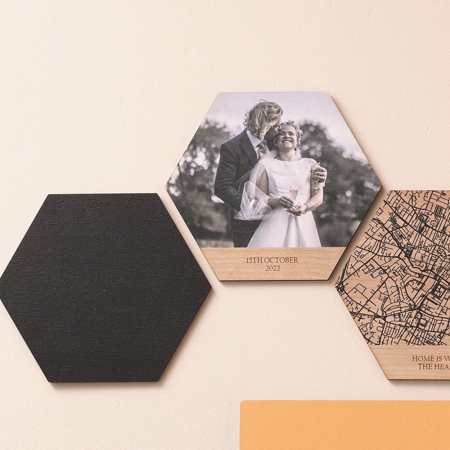 Turn your most treasured moments into stunning wall art with our personalised wooden photo tile. This beautifully crafted hexagon offers a unique and elegant way to showcase your favourite photograph. Release the memories from your phone and add colour and joy to your walls!