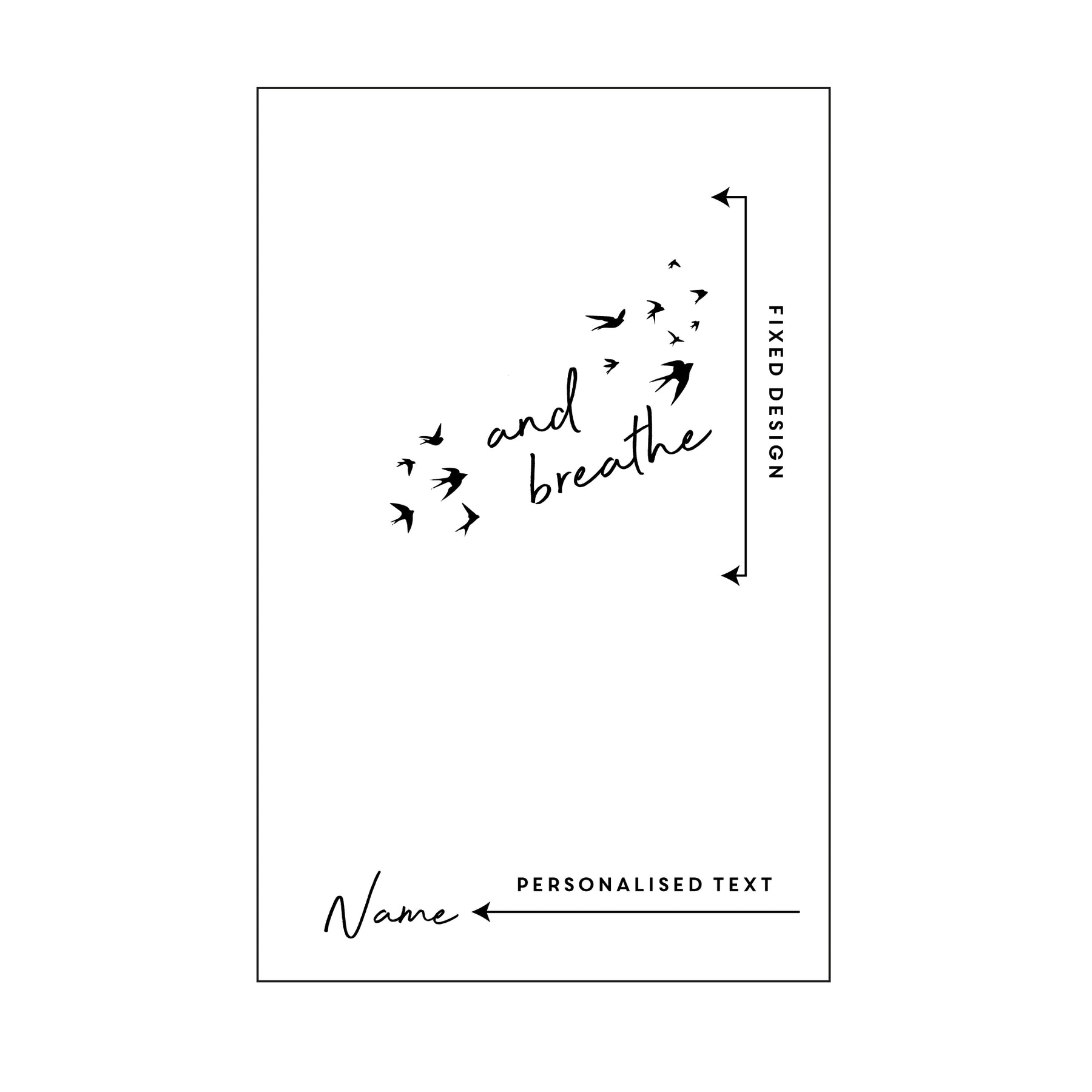 A beautiful and luxurious journal engraved with an illustration of birds in flight, the words "and breathe" and personalised with a name.