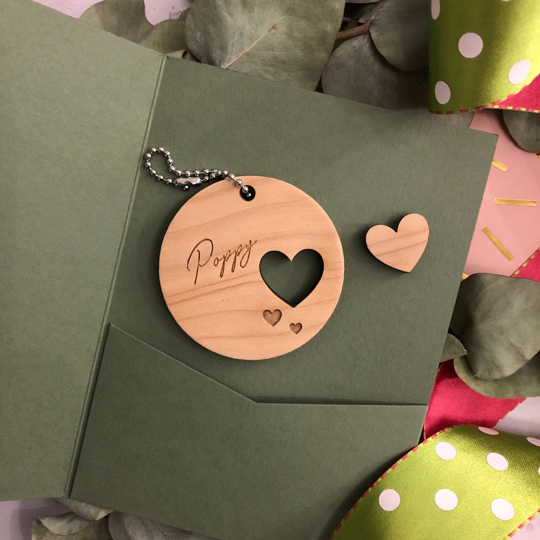 These wooden tokens have a small cut out heart. This tiny heart could be placed in a memorial, or stay with a baby to become ashes, forever entwinned. The larger round token might go in a memory box, or be hung in the home where you want to be reminded of your child, and is engraved with their name.