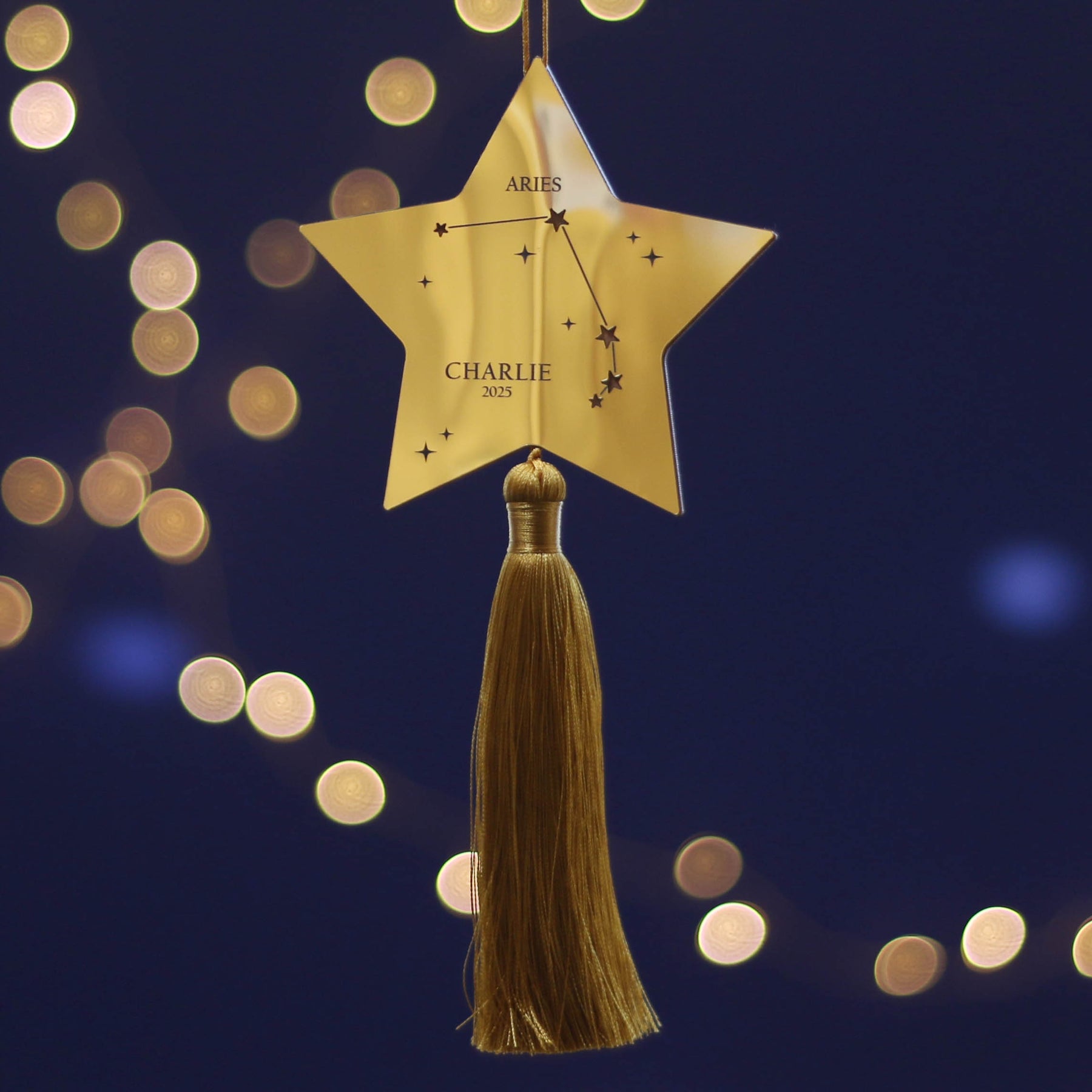 Each personalised star sign decoration measures approximately 9.5cm across and 20cm long.