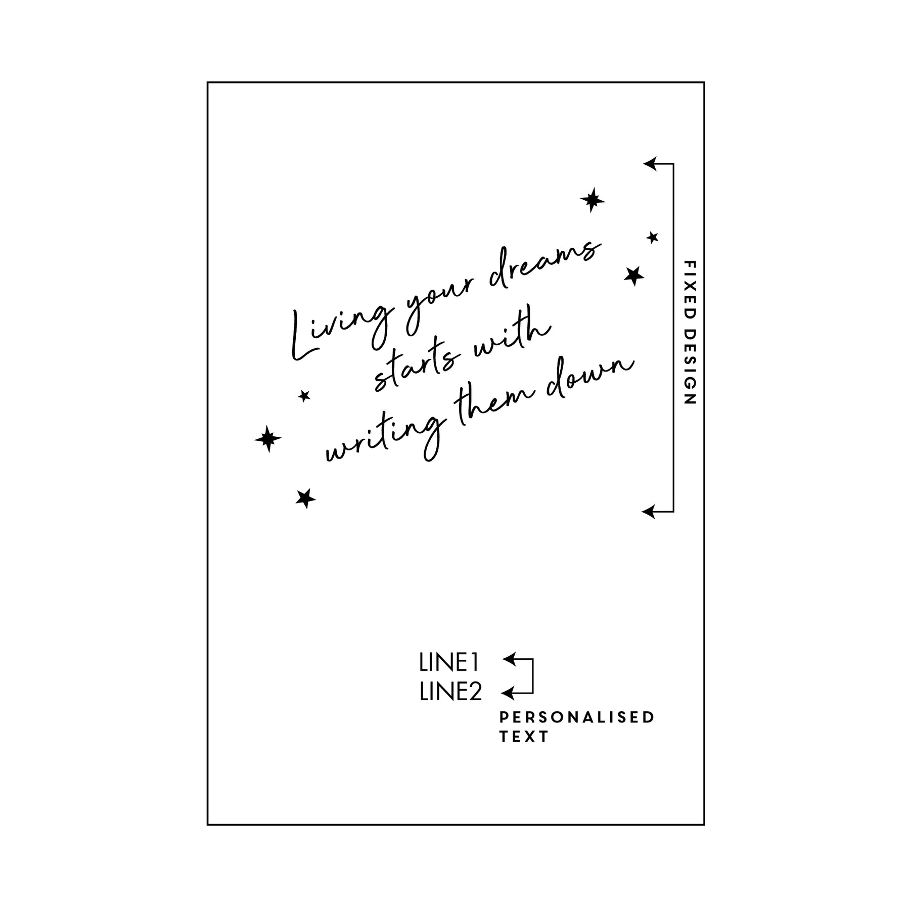 Engraved with the phrase " Living your dreams starts with writing them down" there is space at the bottom to add a line of personalised text.