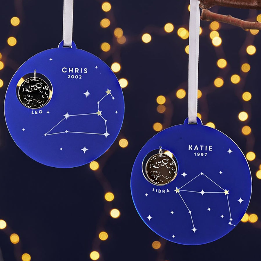 Night Sky Personalised Star Sign Zodiac Christmas Tree Decoration