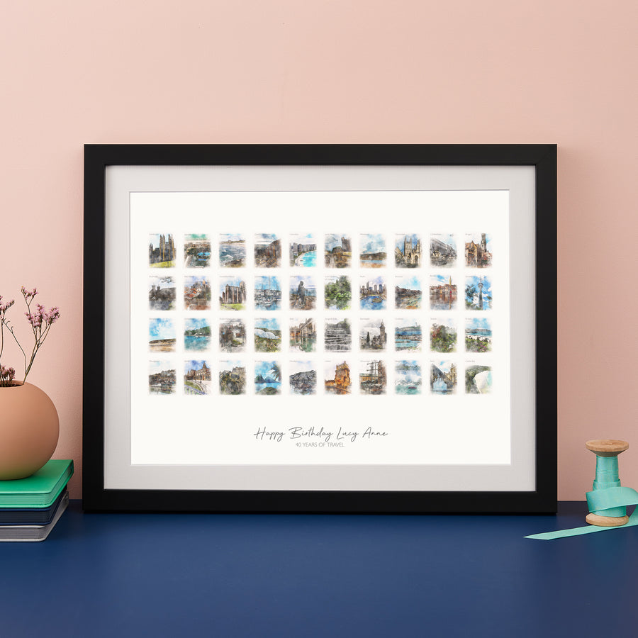 40th Birthday or Anniversary Watercolour Favourite Places Memories Print