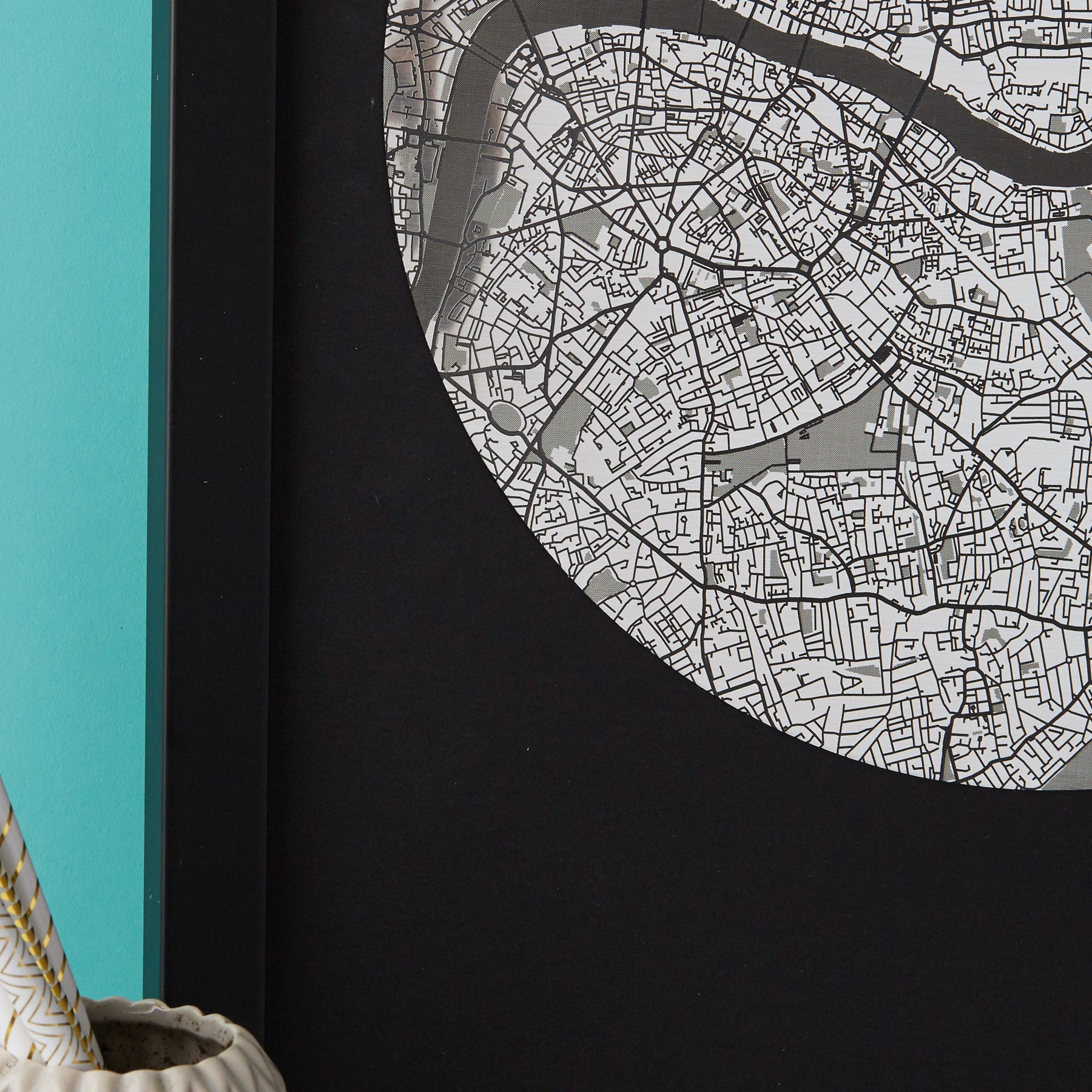 Our metallic London map artwork is engraved in a beautiful reflective silver or gold base to create a unique full moon-shaped artwork of our favourite capital.
