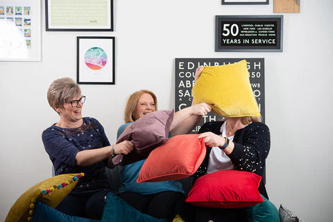 Betsy grew up in East London, not really thinking about what to be when she was big, but she always, ALWAYS painted and doodled and crafted along with Tony Hart (love him!) It was no surprise to anyone when this passion became a career. Betsy Benn was launched in 2010, and now, together with Catherine & Rachel, she can be found in the studio in Cheltenham: designing, painting, doodling, crafting and occasionally eating cake. Pop in for a slice.